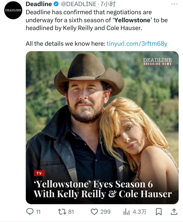 此外,黄石天地还有一部养殖剧定名为《6666》,它的故事发生在德克萨斯州的6666牧场,可能会在来岁播出。