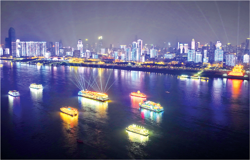 长江上的纵向船阵。图片着手:长江日报