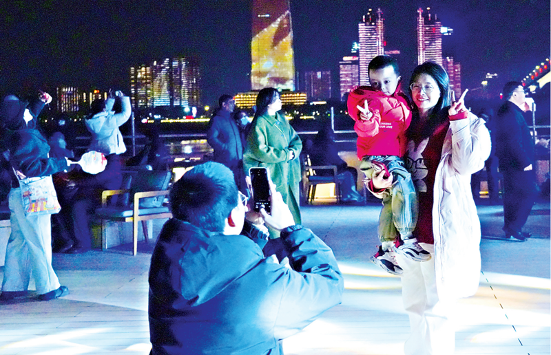 春节假期,市民旅客登船打卡春晚同款。图片着手:长江日报 侯钰倩 摄