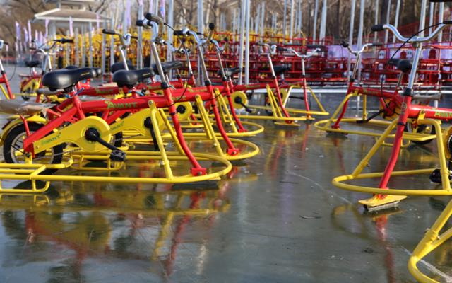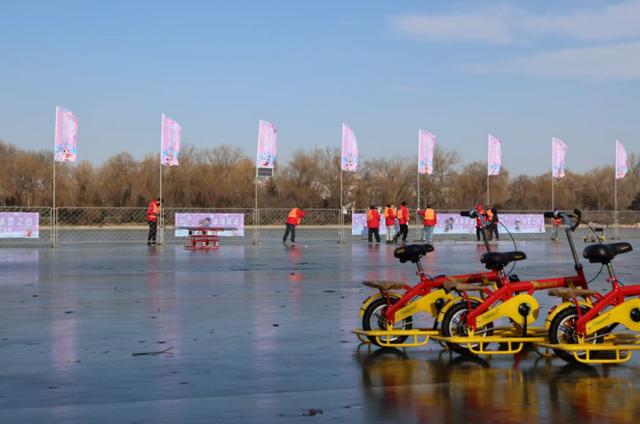 走进冰场区域,插着彩旗的围挡将行径区明晰永诀,门头吊挂的拱门造型与冰雪主题笼罩妙不可言,营造出浓厚的冬日氛围。踩在坚实的冰面上,眼下传来圆润的声响,责任主说念主员正手执用具对局部冰面进行临了的平整功课。冰场上,传统冰车、单东说念主和双东说念主冰上自行车、卡通造型冰车等建树整皆成列。