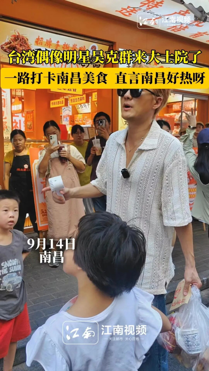 9月14日下昼,歌手吴克群来到南昌大士院,沿途打卡南昌结净好意思食。在一家油条包麻糍店门口,他还亲切地筹办雇主,大热天炸东西热不热,他我方王人周身大汗了!不少市民见到吴克群后,安身拍照。“很有亲和力,他每打卡一家店还要祝雇主买卖欢叫!”