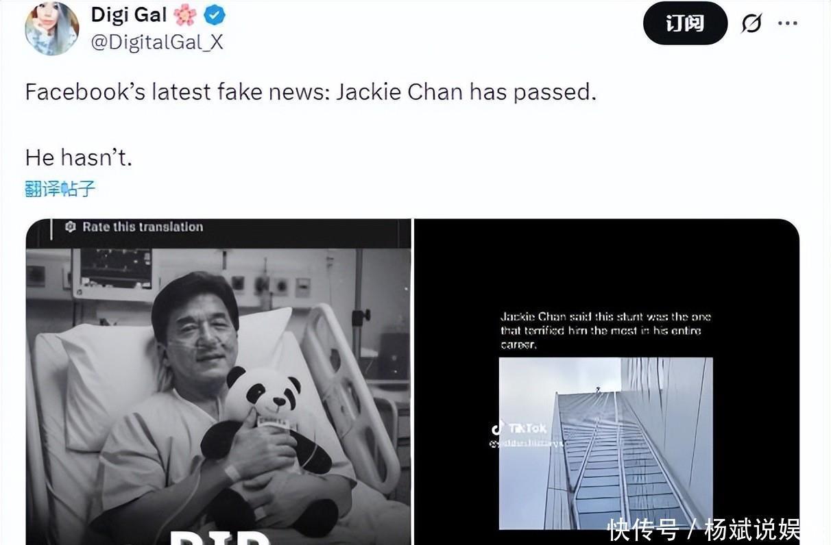 这几天网上炸了锅,说成龙走了。71岁的东谈主,转眼传来噩讯,谁不慌?尤其那张相片,白得发青的脸,插着管子躺病床上,配上“拍戏披沥肝胆抢救无效”的笔墨,看着太真了。不少网友一下子信了,微博、抖音到处齐是悲伤留言,有东谈主说:“童年回忆垮塌了。”
