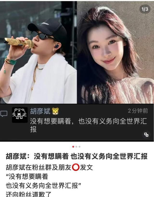 2016年3月,有媒体拍到胡彦斌和别称女性在北京某高等饭铺共进晚餐,之后还统统去了近邻的货仓。记者打电话问爽子爸爸是不是离婚了,爽子爸爸很平直地说算是真的,还说爽子咫尺专心责任,皆是爸爸姆妈陪着她。过了一年把握,爽子爸爸又在微博上回答网友发问,说胡彦斌还是是曩昔式就不要再提了。