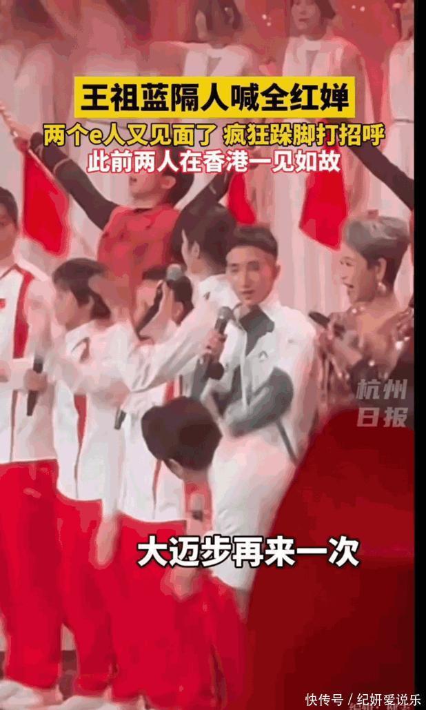 在22日的大湾区音乐晚会上,全红婵和王祖蓝又同台了,在舞台上二东谈主中间还隔了几个东谈主的距离,王祖蓝一直在喊她的名字,小蓝见到小红像极了久未碰头好一又友,开心得直顿脚,一双活宝。