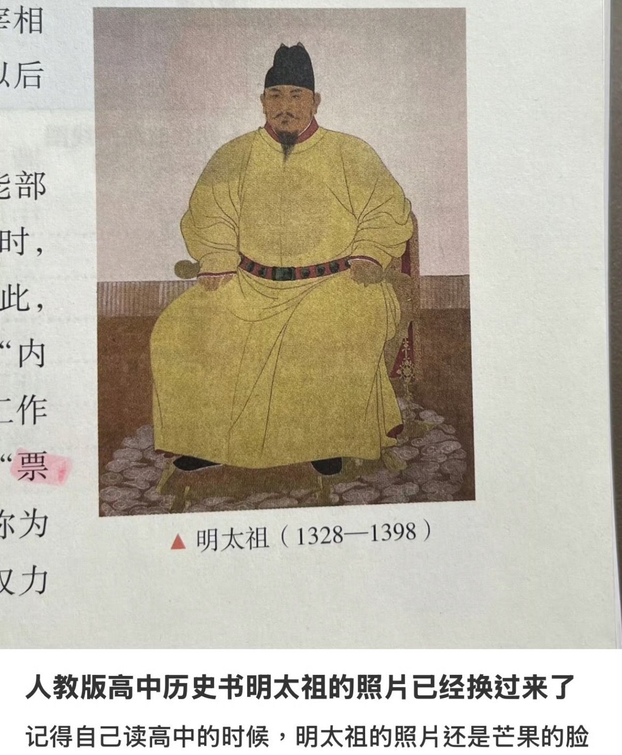 2025年12月7日,“讲义上明太祖相片更换”话题登上热搜榜首。新版初中历史教材中将朱元璋以往民间流传的“鞋拔子脸”画像,更换为愈加尺度的肖像。新像呈现朱元璋面庞清廉、身着龙袍的尊荣形象。