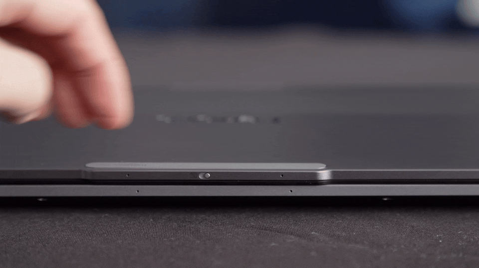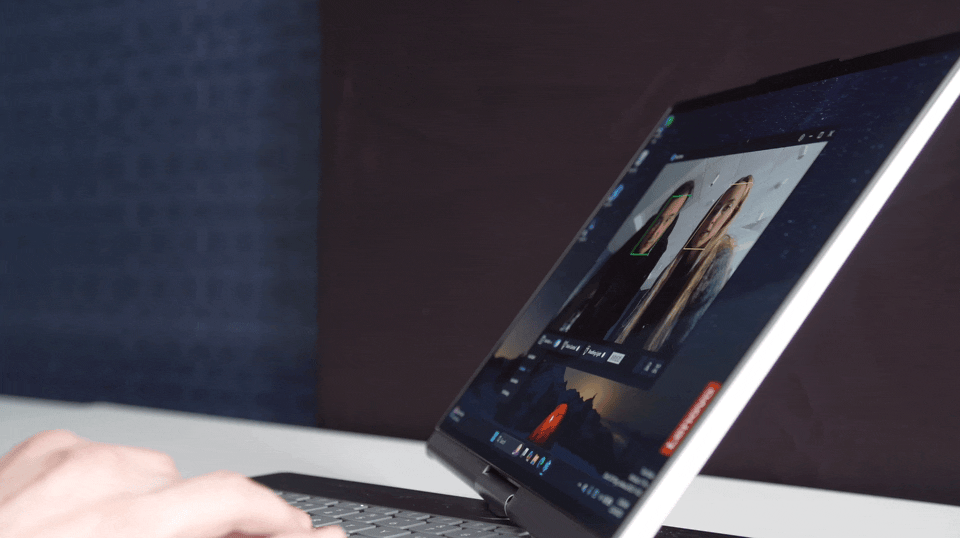 只需要轻轻敲两下 A 面的扶手处,ThinkBook Plus Gen 7 Auto Twist 就能在两秒钟内平滑地开放屏幕,贬责了曾经飞舞本难以单手开盖的世纪贫瘠。