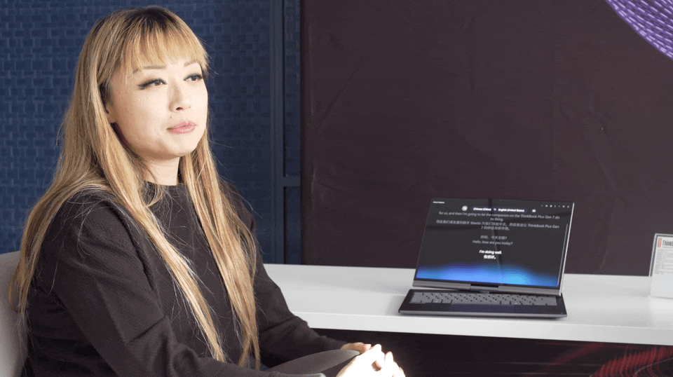 此外,这样「灵动」的缔造天然也缺不了 AI 功能,联念念除了给 ThinkPlus Gen 7 Auto Twist 加入了可视化 AI 助手以外,还提供了一个屏幕随动翻译的用法——