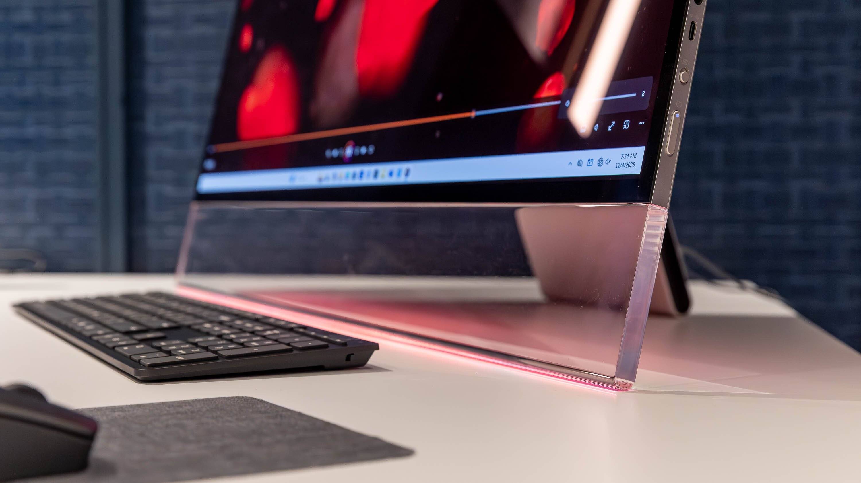 但 Yoga AIO i Aura Edition 的修养就不是二十年前的 Cinema Display 能够望其肩背的了。