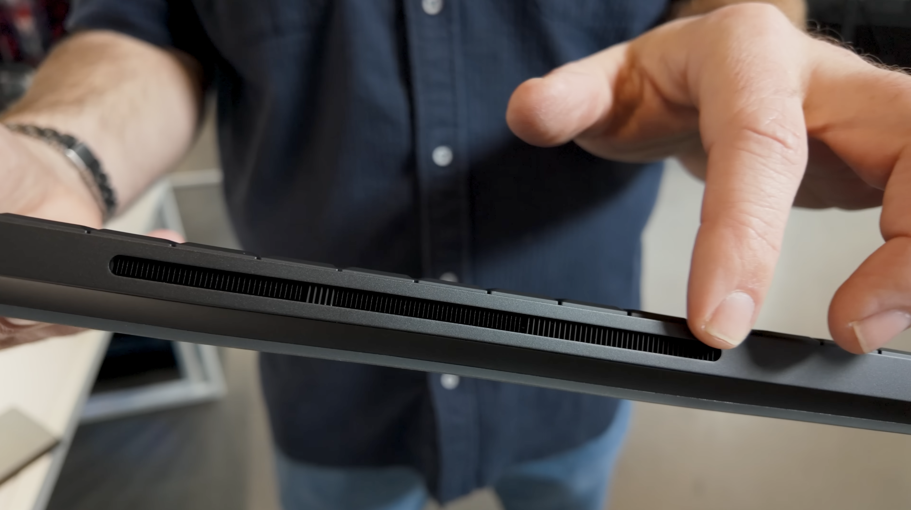 比如这个镁铝合金的笼罩式机身,就相配有曾经微软 Surface Studio 的神韵: