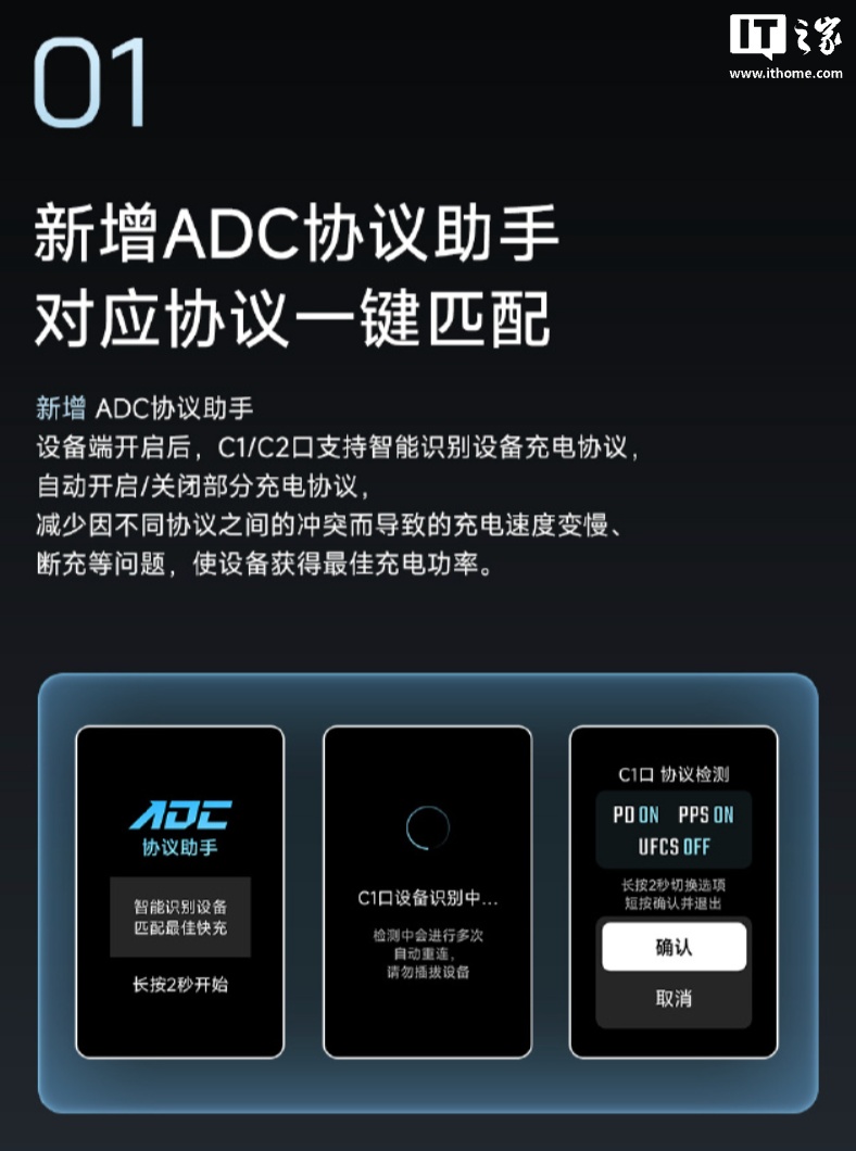 新增 ADC 左券助手更新后开拓端 USB-C1/C2 接口撑捏智能识别开拓充电左券,自动开启 / 关闭部分充电左券,减少因不同左券之间的打破而导致的充电速率变慢、断充等问题,使开拓赢得最好充电功率。