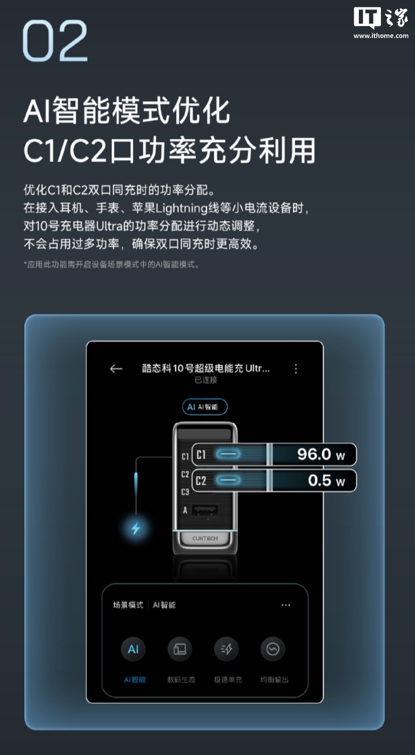 IT之家 1 月 21 日音问,酷态科布告旗下 10 号充电器迎来 1 月 OTA 升级,主要新增 ADC 左券助手、AI 智能方式、开拓端二级菜单等。