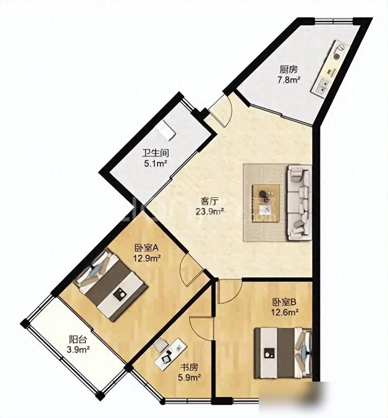 有些户型名义面积大,本色走廊又长又空,墙歪扭扭产品摆不下。