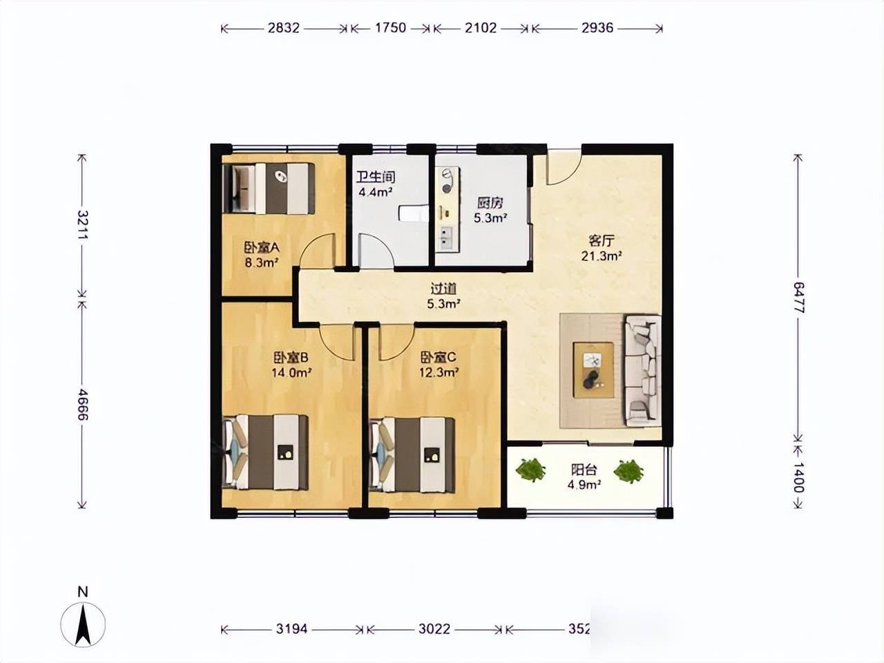 卧室宽度超三米,床放好还能塞个书桌;客厅正派直正,大沙发一摆不狭隘;厨房别管一字U型,动线顺口才是王谈,洗切炒一条龙不打架。