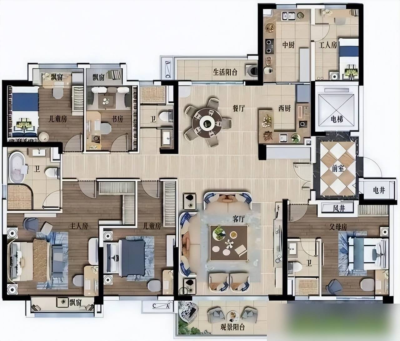 空间用起来跟水流似的顺畅,那种看着大但拐角浮滥的“假大户型”,谁住谁屈身。