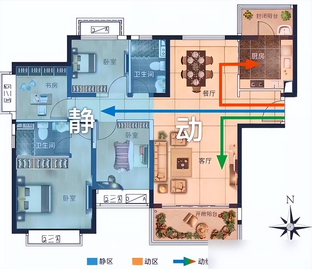 动静区分听着专科,说白了等于“搅扰区”和“清闲区”分家。