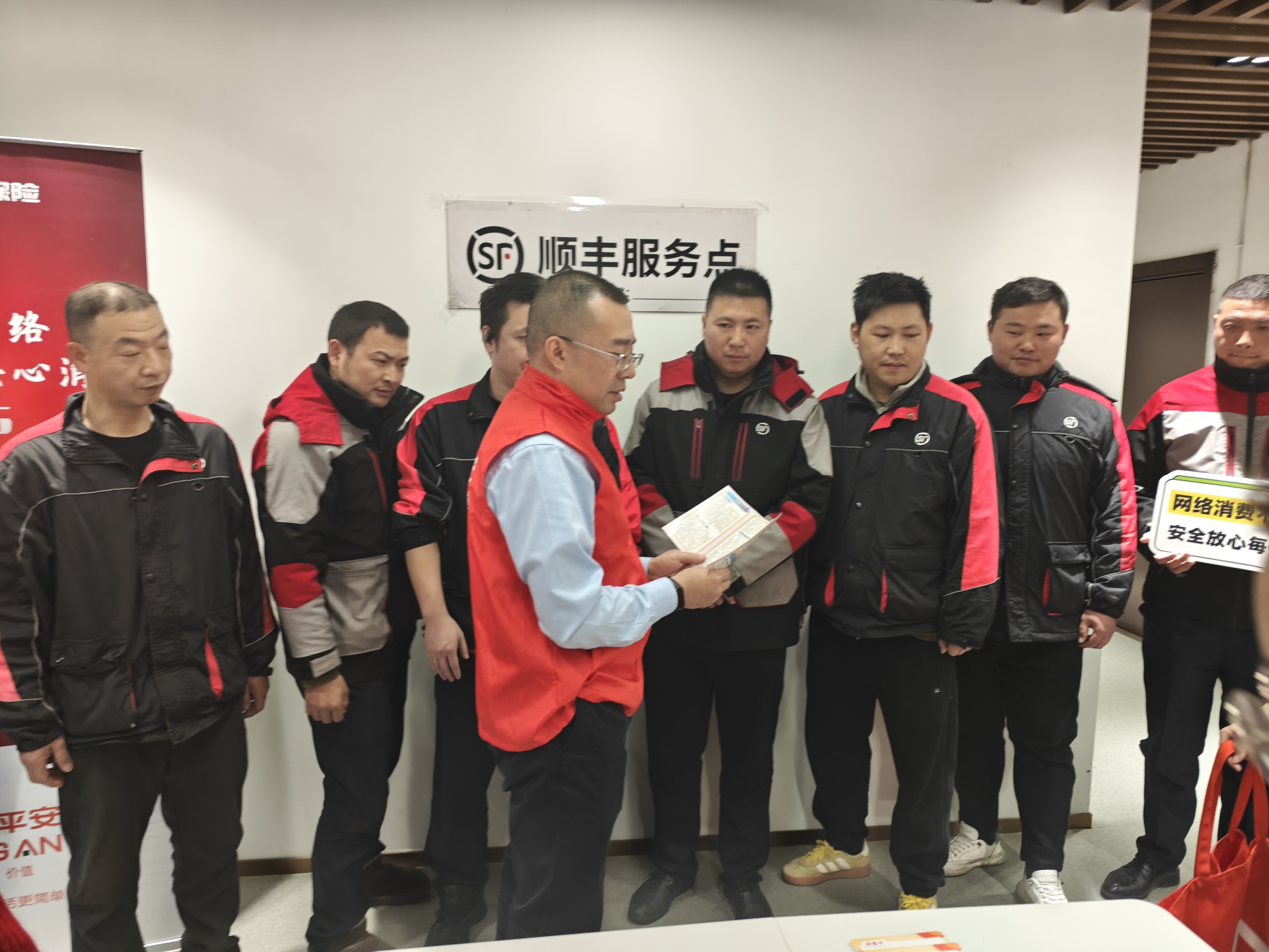 当日下昼,吉利健康保障浙江分公司总司理带队走进东说念主流密集的快递驿站,开展金融学问普及步履。快递员行为集结千门万户的进攻群体,雷同是金融学问普及的要点对象。