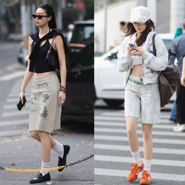 “露胯”下装本人就比基础款更有预备感,在选款上,无须寂然于裤子或裙子,皆不错斗胆尝试,比如短裙、短裤或热裤等,皆能营造浓烈的前锋感。